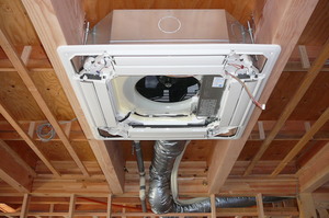 このエアコンはリビングに設置したのですが、通気ダクトを通って何とトイレと脱衣場にも冷暖房がきくようになってます![]()