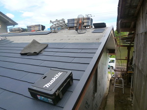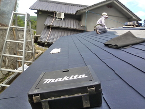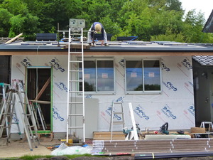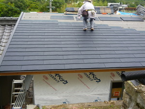 増築部分の屋根も終わりいざ屋根張りへ![]()