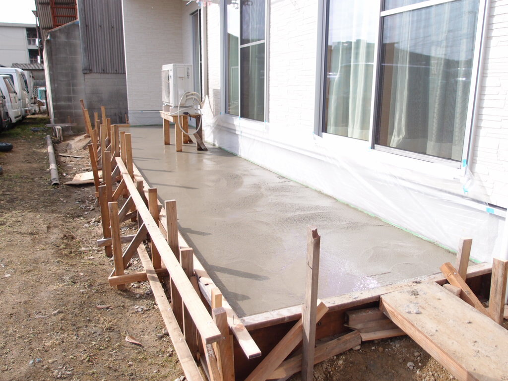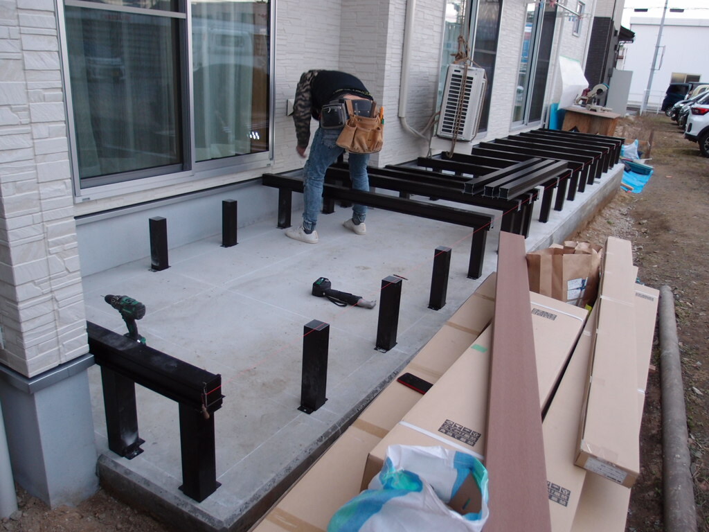 コンクリート打設からウッドデッキの組み立て、また目隠しフェンスの設置をしていきます。