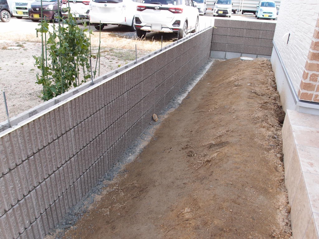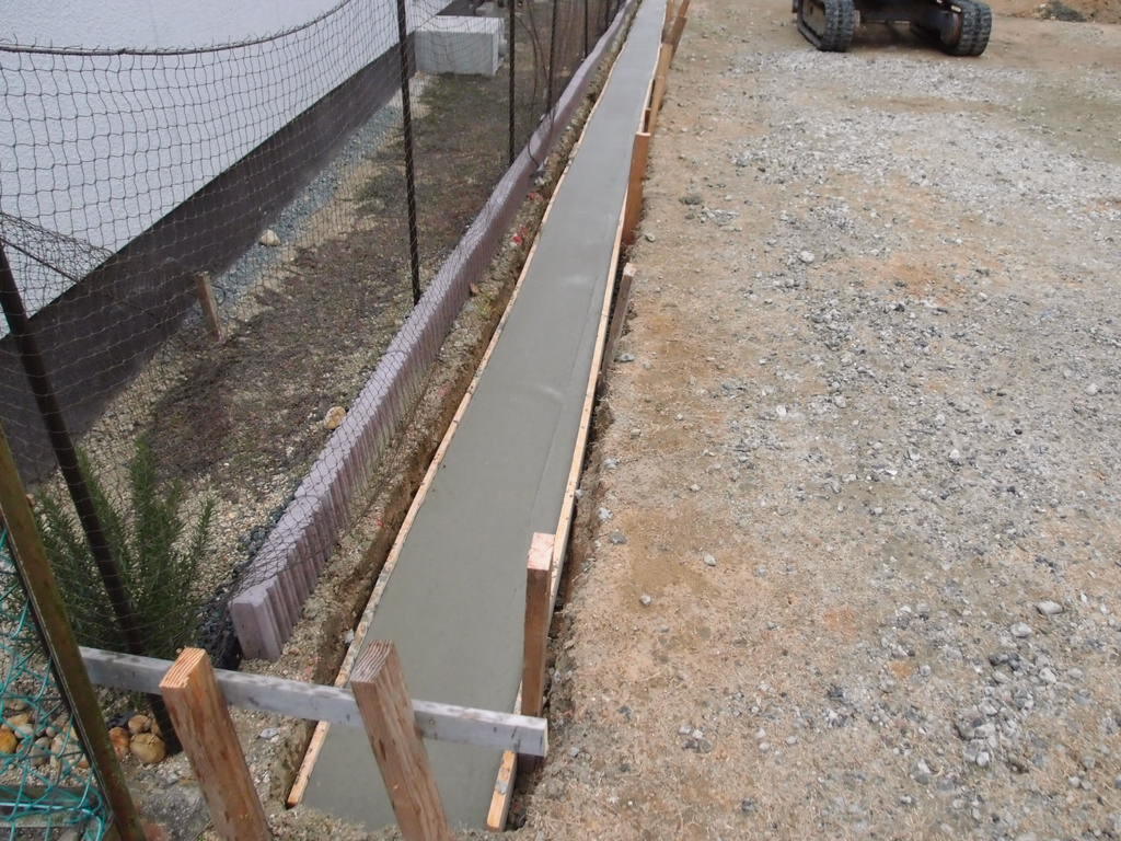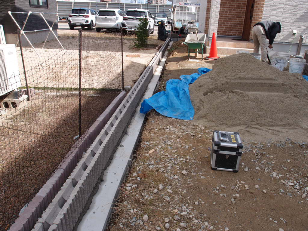 フェンス設置の前準備として、ブロック塀を積むための基礎工事を行っています。