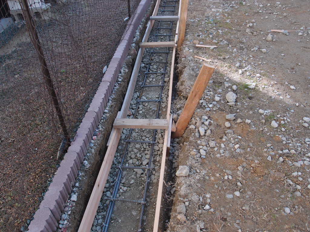 フェンス設置の前準備として、ブロック塀を積むための基礎工事を行っています。
