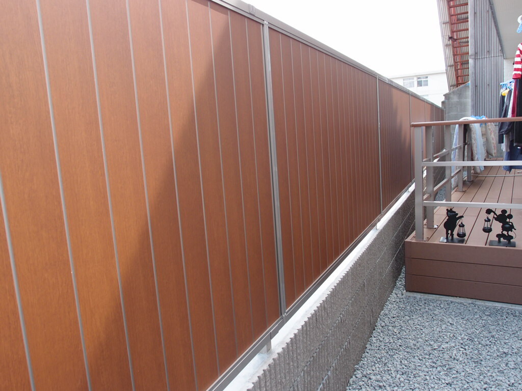 目隠しフェンスは、ウッドデッキと同じブラウン系で色味を合わせました。