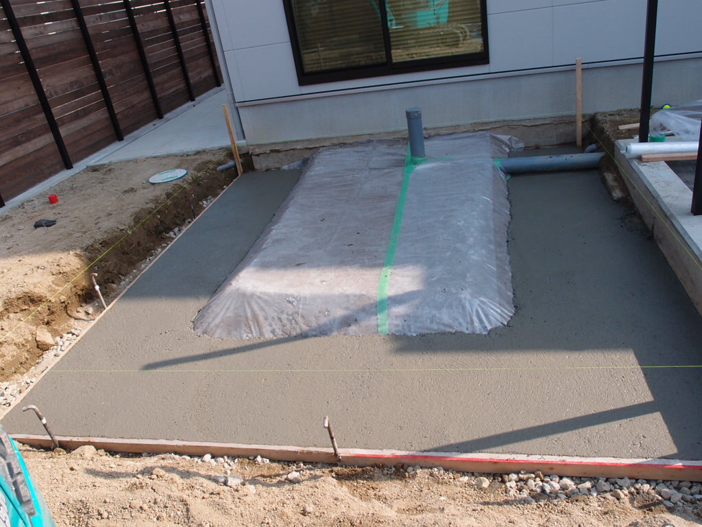 材木で作った目隠しフェンスを一部取り外し、駐車場を養生しました。