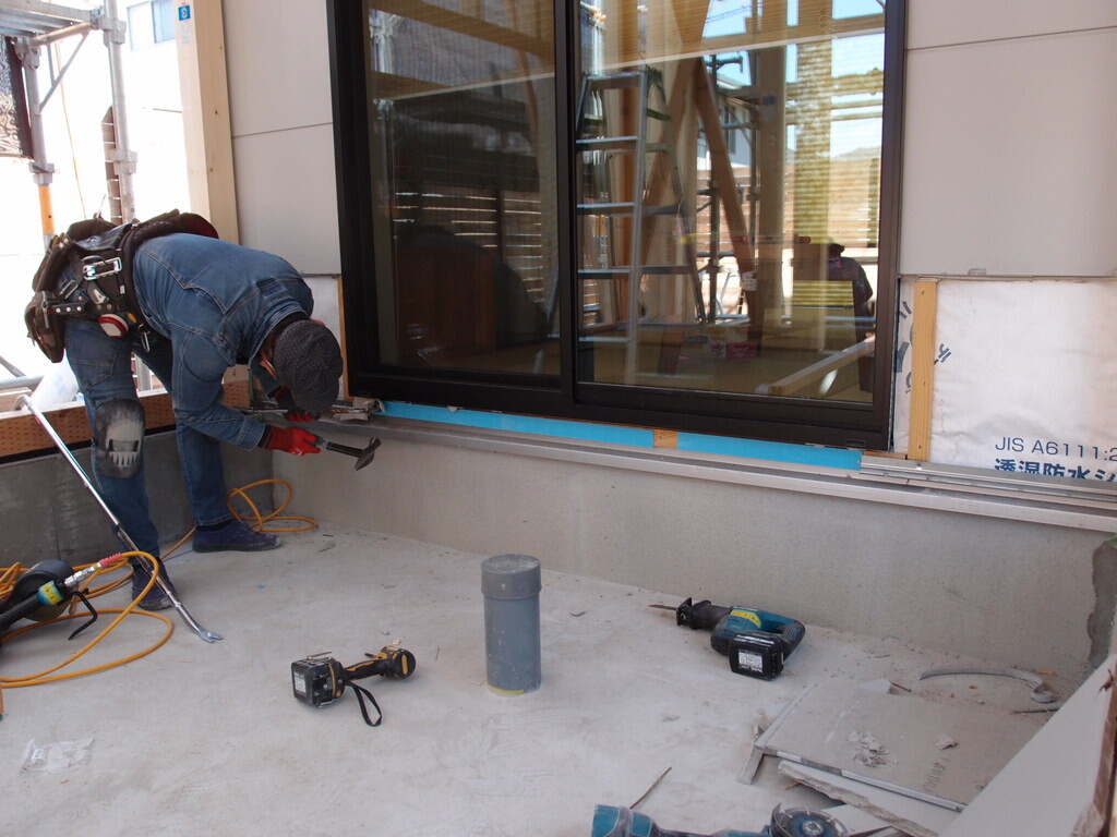 既存の建物と増築部分の水切りのおさまりに頭をひねりましたが良い案が出て、いい感じにおさまりました。