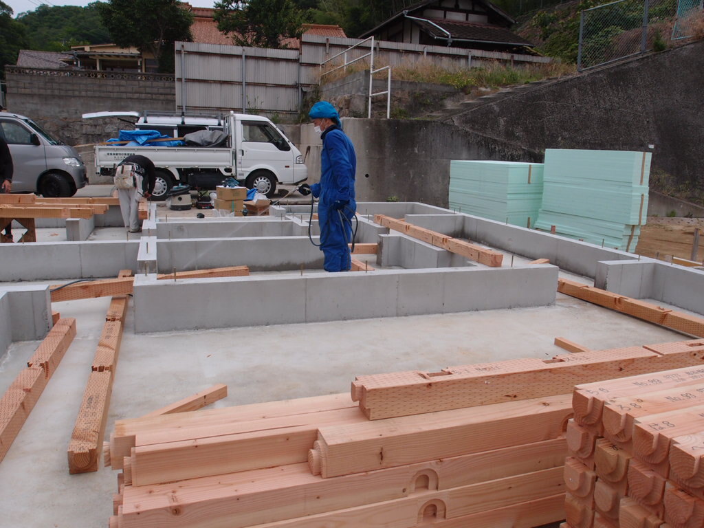 薬剤を散布し防蟻(ぼうぎ)処理を行いました。