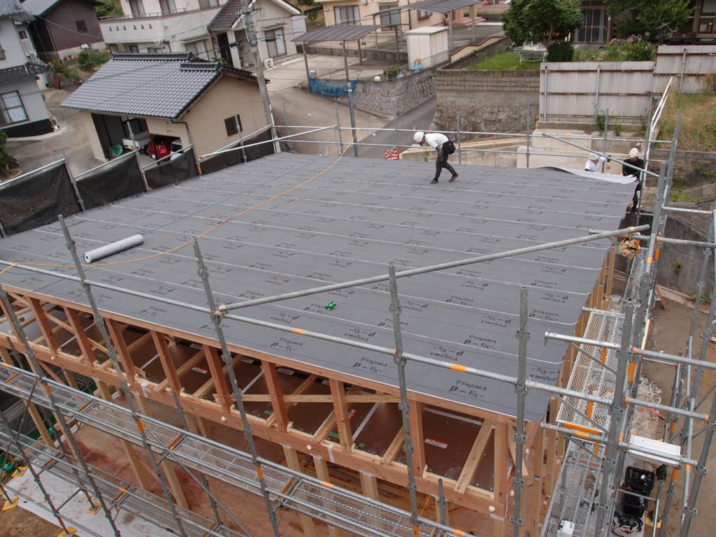 三原市久井町:SW工法で快適な23坪の平屋住宅を建設中!屋根工事完了 -