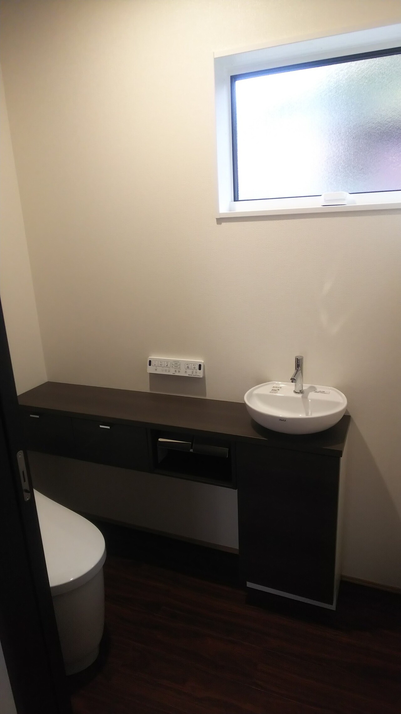 洗面台横には、タオルなどを置いておける棚を設けました。