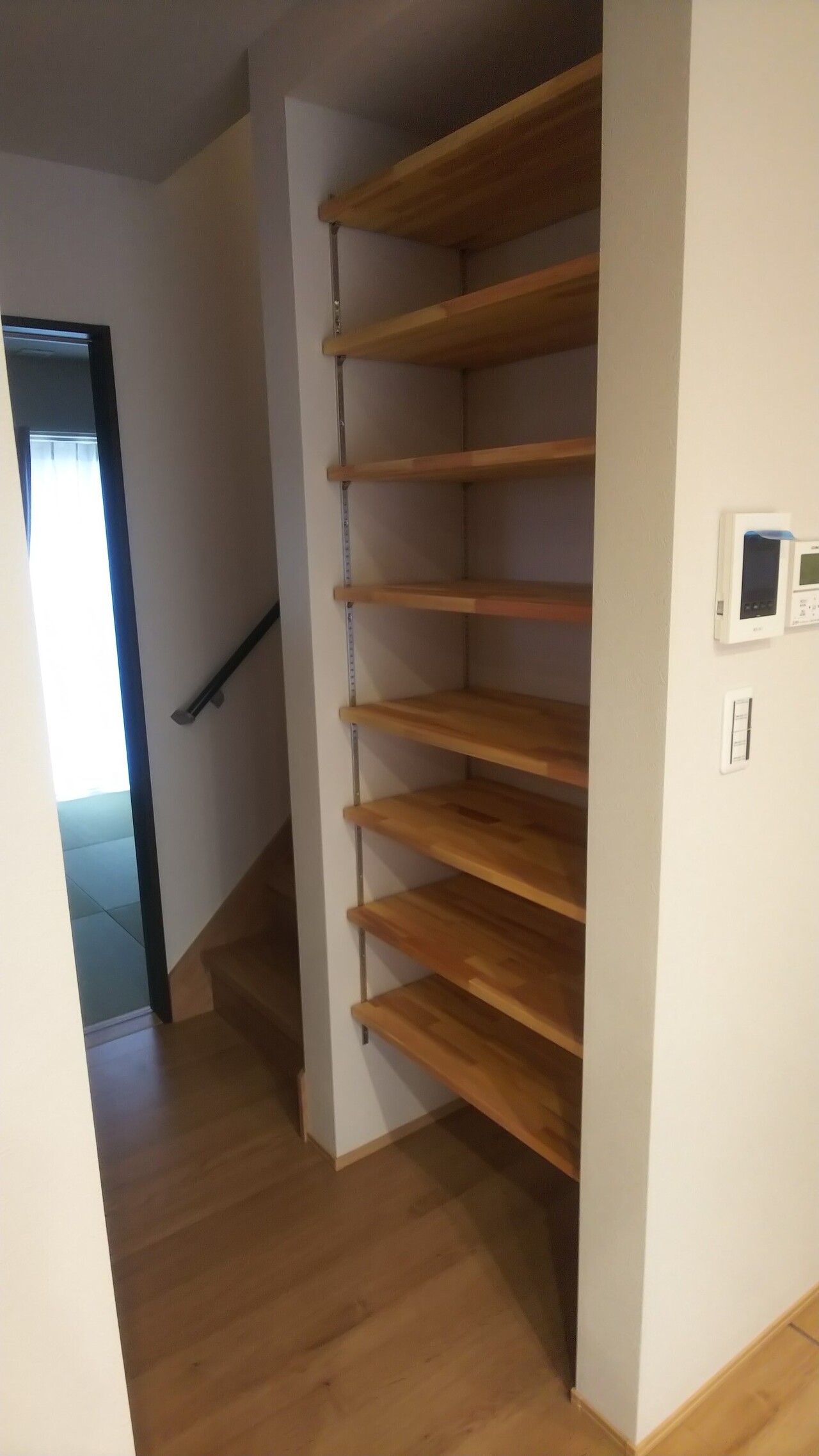 すぐ近くにパントリーも設けましたので、キッチンペーパーなどをしまっておくことができ、なくなったらすぐ補充できます。