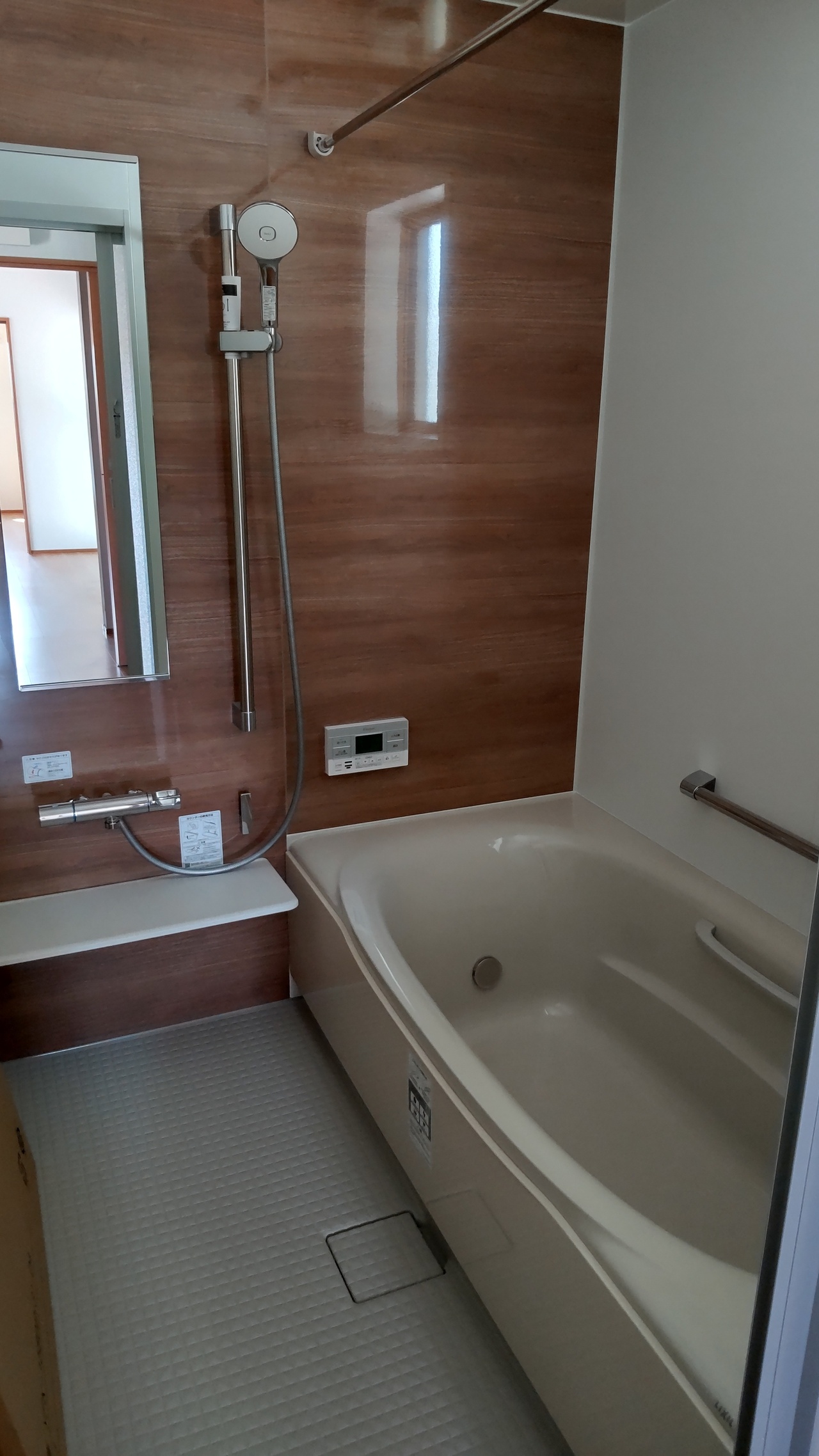 木目調の壁が温もりを感じさせる浴室は、毎日の疲れを癒やしてくれる空間です。
