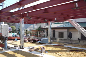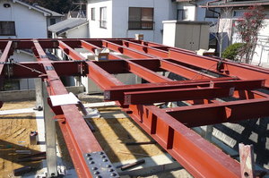 さて昨年暮れになりますが現在工事中の尾道市S様邸の1階鉄骨部分の建方工事を行いました![]()