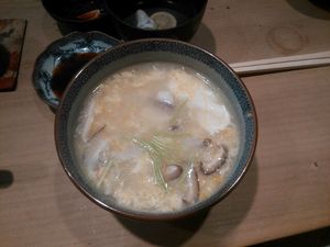 おなかいっぱいのはずですが、大きな器に入っていた雑炊を