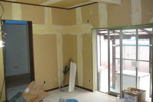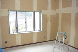 下地処理をして、いよいよ壁紙を貼っていきます![]()