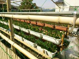 竹を組んで囲いを作り、ネットをはってイチゴちゃんを守ってあります![]()