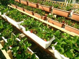竹を組んで囲いを作り、ネットをはってイチゴちゃんを守ってあります![]()