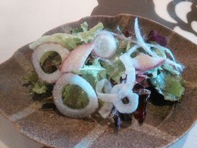 まず、サラダ  レッドオニオンがすごく甘くて美味しかったです