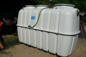 コンクリートを打設して乾くのを待ってから浄化槽本体を据付ます![]()