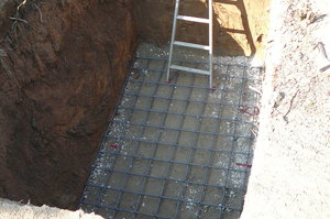 その後、底部に砕石を敷いてしっかり締め固めてコンクリートを流し込むための鉄筋を組み立てます