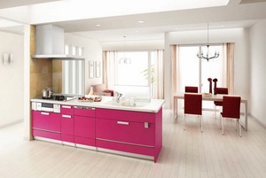 熊本で新築工事中のお友達のお宅のキッチンもピンクになりそうです