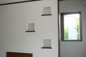 3Fへ上がる階段入口に設置した飾り棚は匠の思いつきで施工しました
