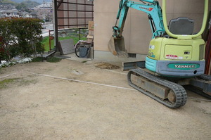 まずは重機を搬入し杭打工事の支障となる地中障害物を撤去します![]()