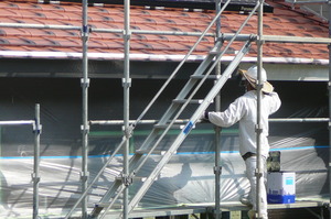 この日は天気にも恵まれ、破風、軒裏の塗装工事がスムーズにいきました![]()
