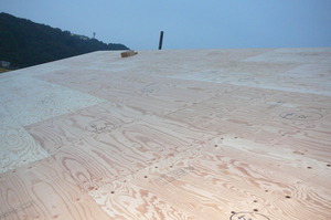 屋根合板張りも無事終わり何とか今日の作業は終了です