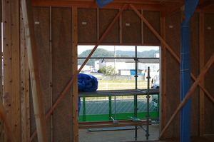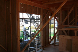 この日は1階部分のスーパーウォール壁パネルを取り付け完了です
