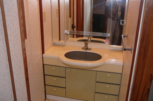右の洗面は母屋新築当時の物なので少々ガタがきてますが