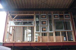窓だらけです 少し付け過ぎなような気もしますが、サッシを納品してくれたFガラスさんいわく、お客様に見てもらうのに丁度いいじゃないですかとの事です たくさん付けさせて都合のいい事言いますよね~(笑)