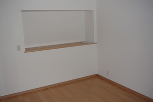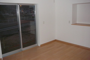 台所だった6帖は子供部屋へと生まれかわりました         収納スペースがないため、出窓部分だったとこを本棚に