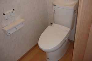 汲み取り式だったトイレは水洗トイレに変身          小型温水器を内蔵した洗面化粧台も設置しました