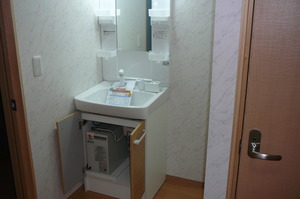 汲み取り式だったトイレは水洗トイレに変身          小型温水器を内蔵した洗面化粧台も設置しました