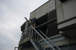 階段上がりきりの土間も、デッキプレートが腐り危ないので、簡易的な補強工事をしました![]()