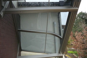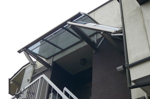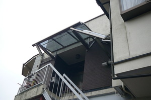 になって、大変危ない思いをされている現場です。今回その外部階段に屋根を付けて、冬の霜対策を行いました。