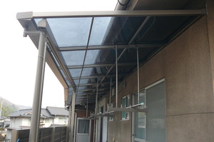 化粧ブロックをついてフェンスの柱を埋め込みます       母屋側にはテラスを取り付けます