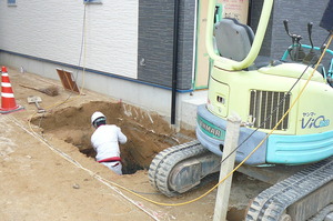 こちらは福山市神辺町に建築中のM様邸 年度変わりの時期も迫り、急いで合併浄化槽を設置する工事を行いました