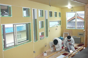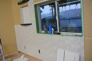 既存壁を取り壊し、新しい空間の出現です  今回の内装仕上げはクロス仕上げではなく、エコカラットという家と空気を美しくする壁材を張っていきます