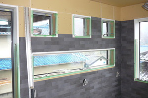 既存壁を取り壊し、新しい空間の出現です  今回の内装仕上げはクロス仕上げではなく、エコカラットという家と空気を美しくする壁材を張っていきます