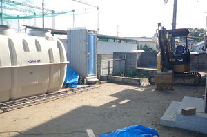 この日はいよいよ合併浄化槽の埋設工事に着手です![]()