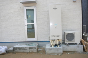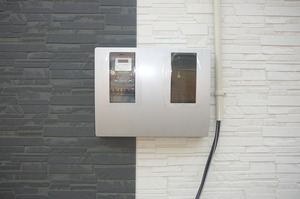 エコキュートも設置し、電気メーターも取付て通電完了  いざ内部の照明を付けると