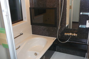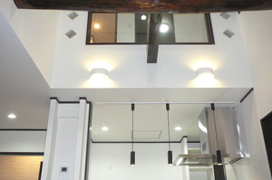 エコキュートも設置し、電気メーターも取付て通電完了  いざ内部の照明を付けると