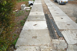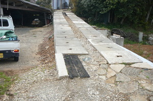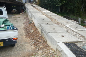重さ約1.5トンのコンクリートブロックを敷き並べて、簡易的なスロープを形成しております