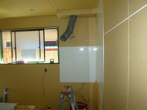 まずは先行してキッチンパネルを張ります       そしてキッチン取付完了