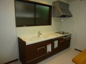 まずは先行してキッチンパネルを張ります       そしてキッチン取付完了