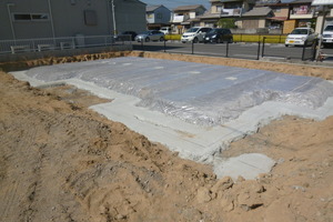 丁度、掘削り工事 土間シート張り 均しコンクリート工事が終ったとこですね