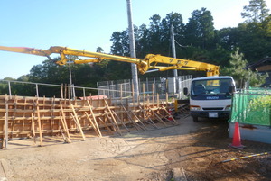 またこちらに戻り、加茂町のS様邸 工事に着手してから一度も雨に降られる事もなく、いよいよ仕上げのコンクリート工事です。