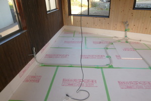 今回は寒さ対策で既存土間の上に断熱材を貼り付けて、土間からの冷気を軽減させます![]()