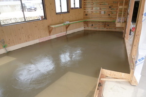 その上から床の不陸調整のためのコンクリートを薄く打設します