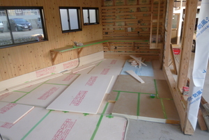 今回は寒さ対策で既存土間の上に断熱材を貼り付けて、土間からの冷気を軽減させます![]()