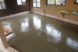 その上から床の不陸調整のためのコンクリートを薄く打設します